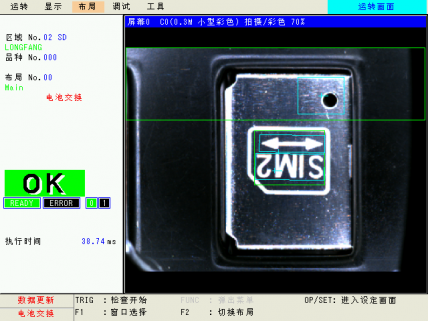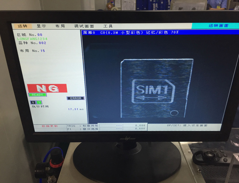 以下案例是為SIM卡元件檢測方向和字符清晰度。顯示OK的表示合格品,NG表示為不合格。